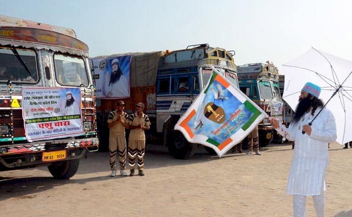 Since the heavy rain and flood had played the havoc across Uttrakhand, the animals threatened by it, still await for help for rehabilitation. On seeing this, Dera Sacha Sauda, the leading organization in humanitarian activities sent third lot of fodder to the victims which was flagged off by His Eminence Saint Gurmeet Ram Rahim Singh Ji Insan on August 27, 2013. This time seven trucks of fodder have been sent to the Uttrakhand flood affected areas. Whole of this relief material would be distributed in Laksar and Khanpur, Haridwar (Uttrakhand).