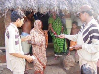 On the 1st October, 2008, Shah Satnam Ji Green 'S' welfare force wing volunteers started the survey. The surveyors had gone there on the special request of Deputy Collector of the Puri, Shri Bhaskar Singh Ji (DC); 30 volunteers went 200 kilometers away from Puri to the worst areas, for the survey. Due to the destruction, these areas were entirely cut off from the rest of the country; especially, the areas of Monida and Ramchandarpur in Delang. So, there were 25 villages that were designated as worst hit. In this block panchayat out of 2,365 houses, over 1,400 houses were destroyed by floods. Similarly in Block Kanas, it emerged in the survey that three panchayats were worst affected and needed an urgent assistance. This amounted to 19 villages in all. After surveying the two blocks, it was decided to help the 35,000 people in the worst affected areas. The people were to be given rice, pulses eatables, clothes etc. Because of the broken roads, there were too many challenges over come in organizing the distribution of aid. But all difficulties vanished in front of enthusiasm of the volunteers. In Orissa, Shah Satnam Ji Green 'S' welfare force wing, in the Kanas and Delang tehsil distributed aid to 9095 families in a total of 27 villages. They initiated their efforts from the Kanas where the 7 villages with 1,260 families were helped the standard ration kit of 5 kg of rice, 5 kgs of pulses, clothes etc. were distributed. The volunteers had to travel several kilometers on foot to reach there and there were no roads to be found. Following that, the volunteers proceeded to Dhankara and Purshotampura gram panchayat in Delang block and disbursed aid to over 6,00 families in the 20 villages. Everywhere, it was the same tale of despair and despondency. But the volunteers of Shah Satnam Ji Green 'S' Welfare Force wing pitched in with an enthusiasm and a wavering faith in God delivered under trying circumstances. This relief effort continued for the next 20 days.
